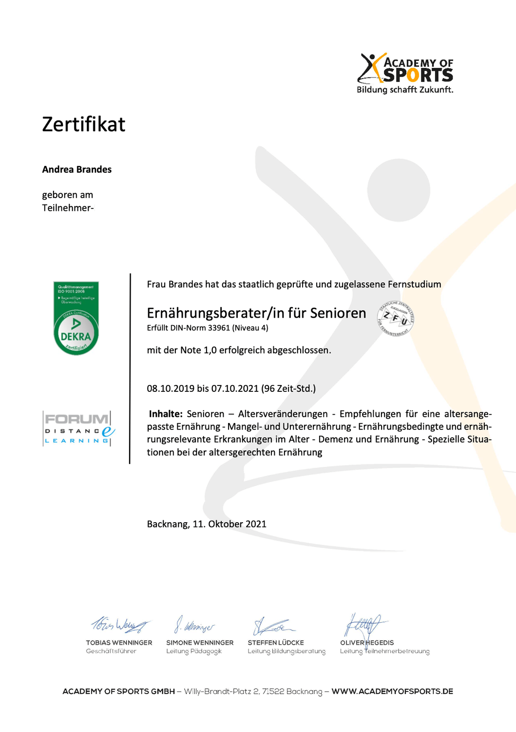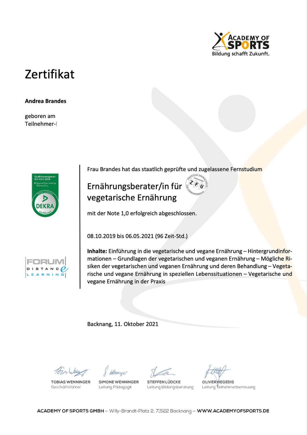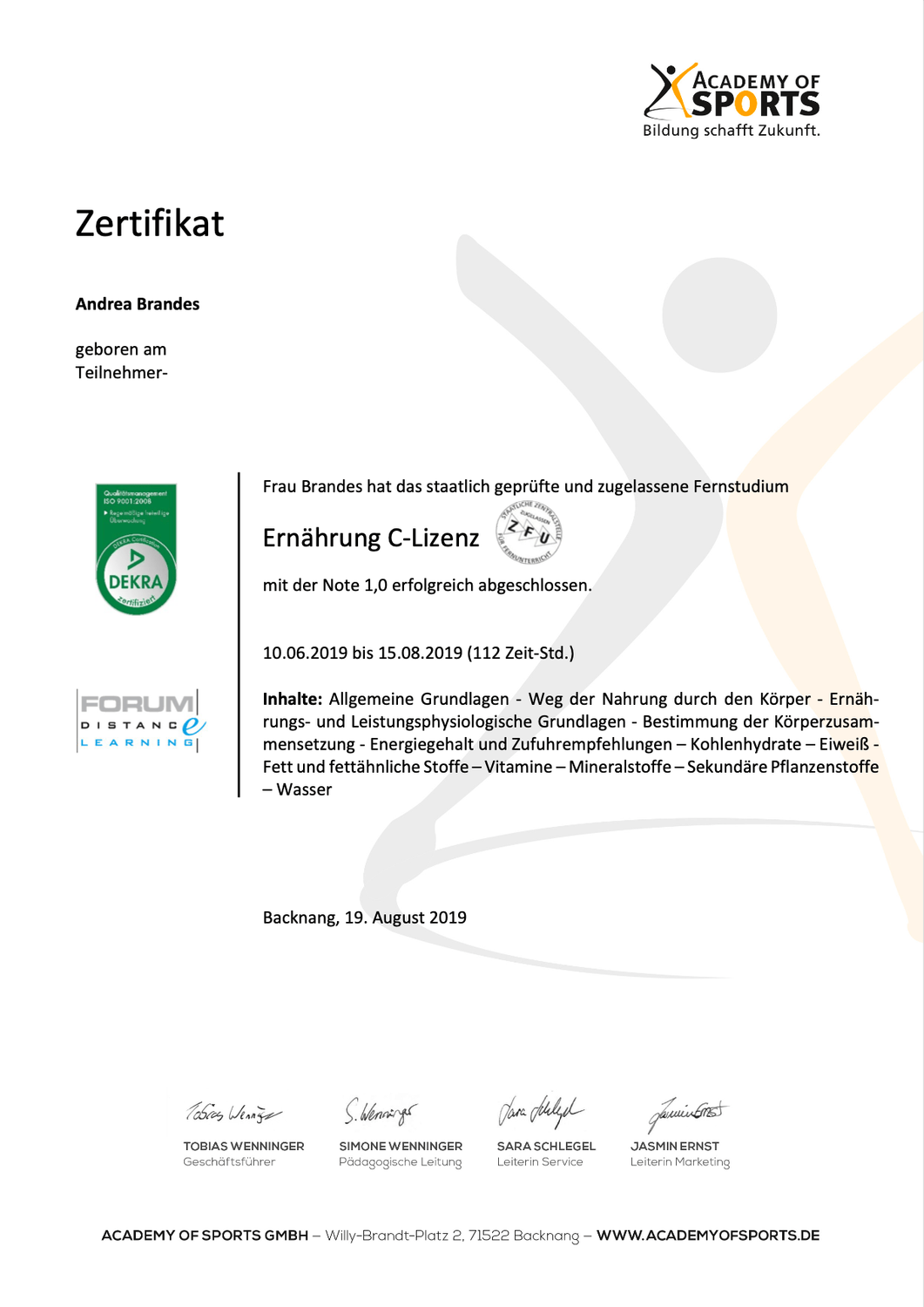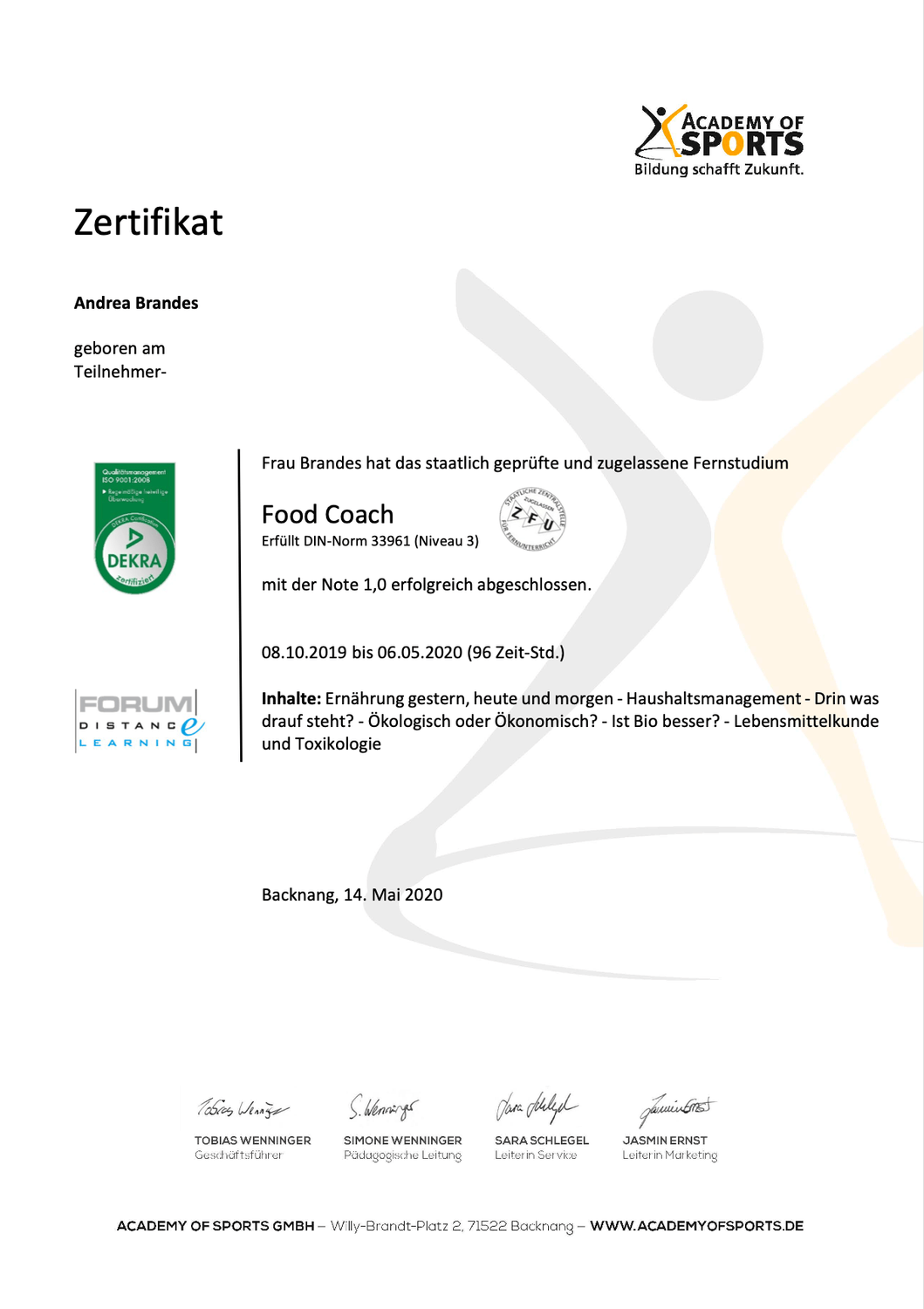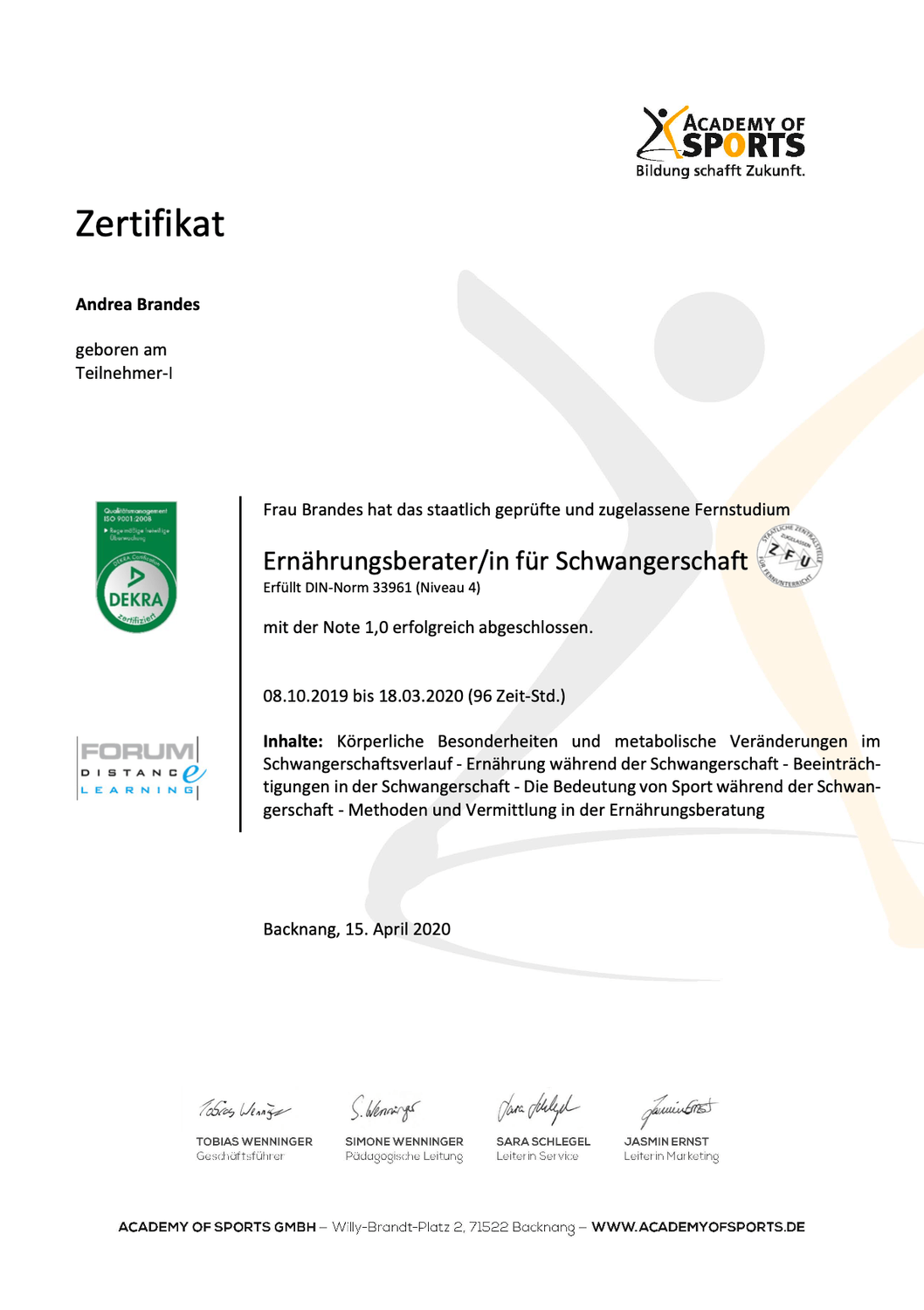 ![]() Andrea Brandes Ernährungsberater A Lizenz | ![]() Ernährungsberater A Lizenz Zertifikat | ![]() Ernährungsberater B Lizenz | ![]() Ernährungsberater B Lizenz Zertifikat | ![]() Ernährungsberater C Lizenz | ![]() Ernährungsberater vegetarische Ernährung | ![]() Ernährungsberater für Schwangere | ![]() Ernährungsberater Babys und Kleinkinder Zertifikat | ![]() Ernährungsberater Babys und Kleinkinder |